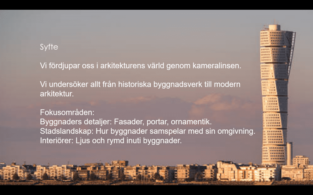 Exempel på förslag till tema: Brutalism, äldre arkitektur, broar och konstruktioner, jämförelse mellan nya och gamla byggnader.