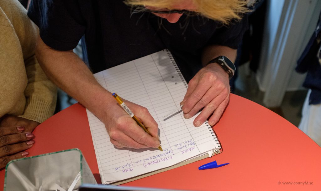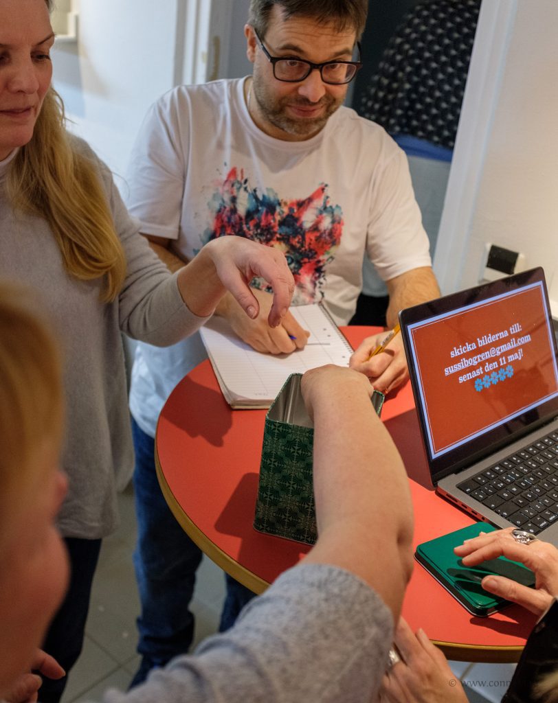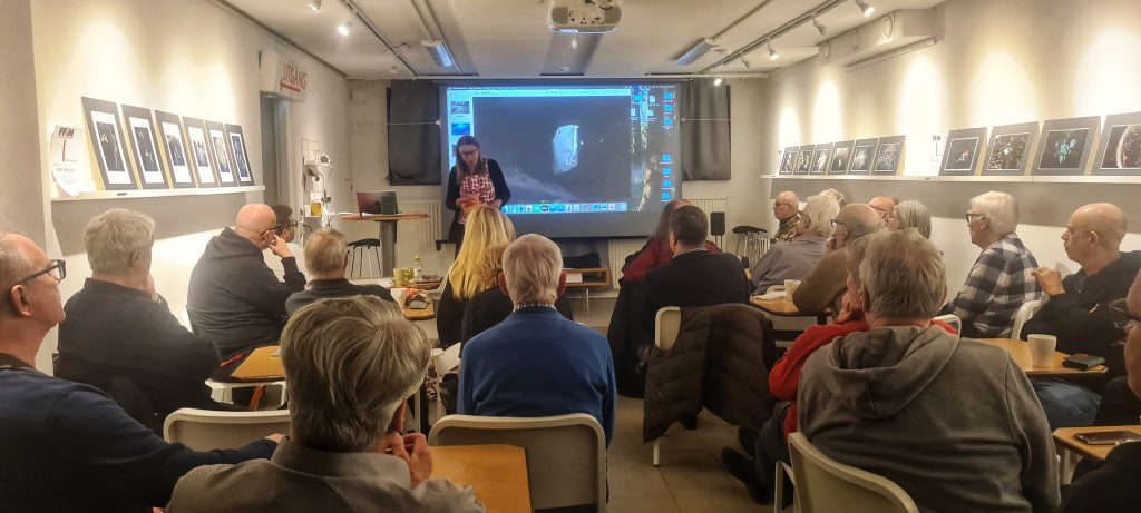 Innan vi avslutar kvällens Måndagsträff, så lobbar Conny för tisdagscafet. En plats att komma ner och byta erfarenheter, få tips och snacka foto med liksinnade.