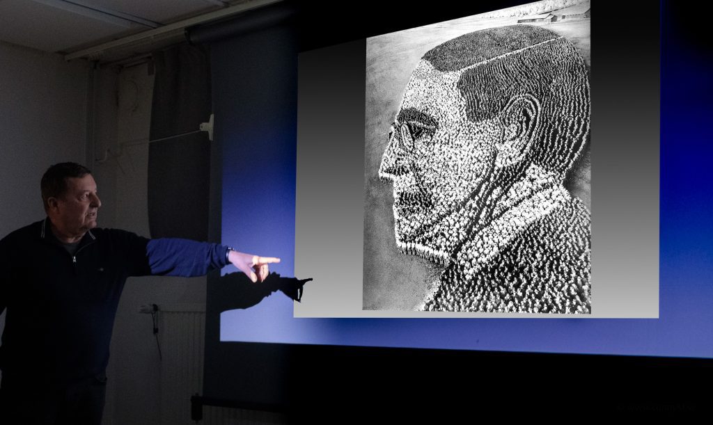 21 000 soldater bildar ett porträtt av presidenten Woodrow Wilson. Året är 1918 och fotografen den 21-årig Arthur S Mole.