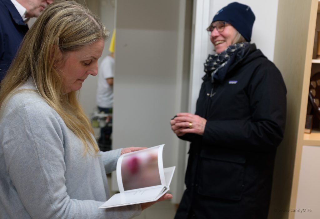 Marie Brage: Beskriver gruppen som att man ger varandra en väl valda knuff i ”rätt” riktning. Hon har gjort en fin minimalistisk fotobok med en Haiku dikt till varje bild, som vi fick möjlighet att titta i. Hennes nya projekt blir socialrealism, skräp som estetiskt tilltalande.