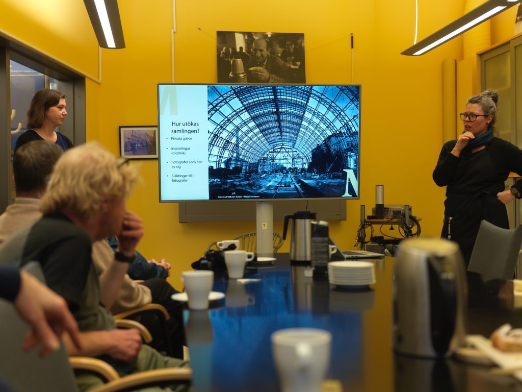 Lina fortsatte att berätta om vad som finns i arkivet och hur det kommit dit. Allt ifrån donationer från enskilda personer, fotostudios och enskilda personer som har skickat intressanta bilder. Detta är ett fortlöpande arbete och museet är intresserade av digitalt material som kan utvidga samlingarna.