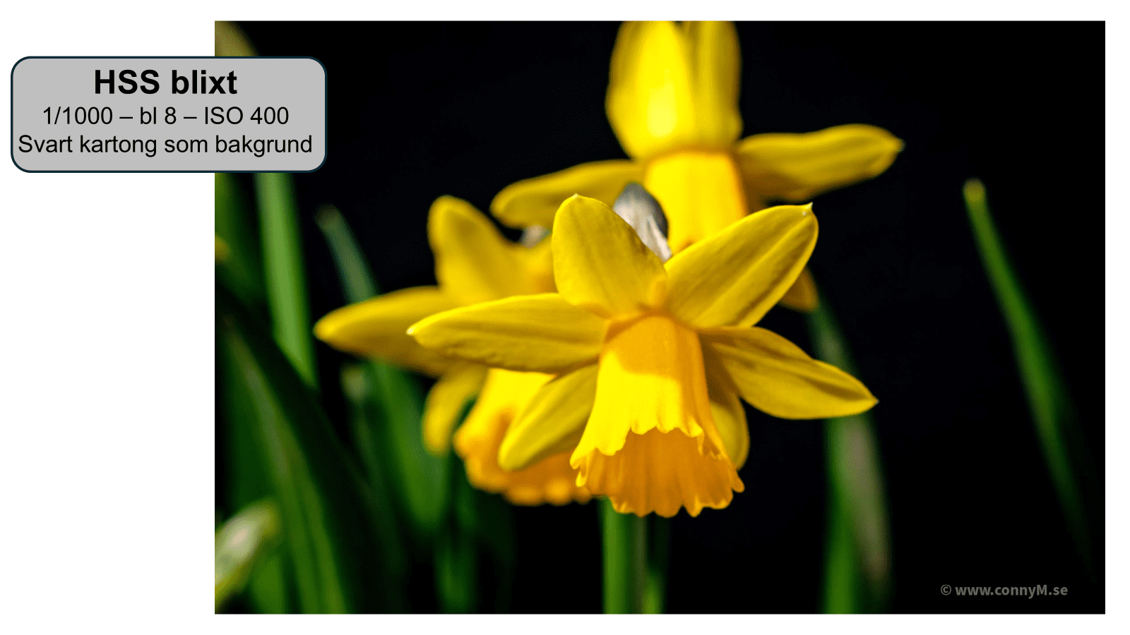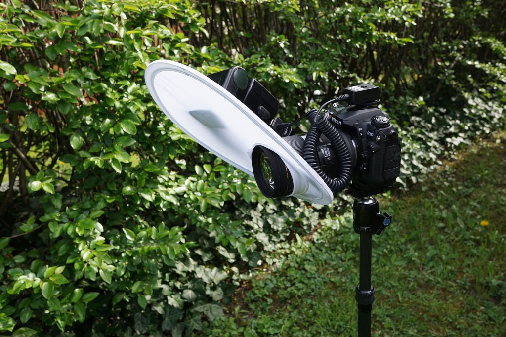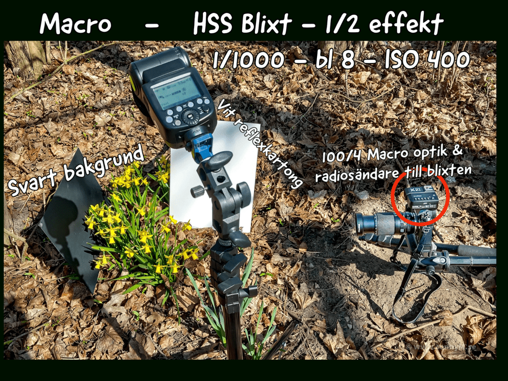 Bengt Karlsson använde en liten ljusspridare/”skärm”, som gör att ljuset sprids jämnt över bilden på korta fotograferings avstånd.