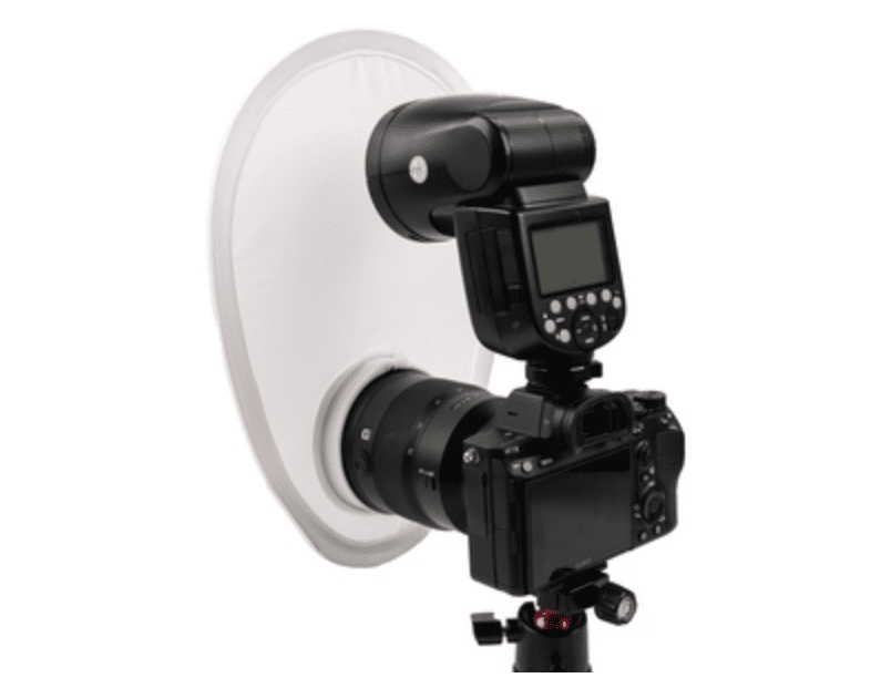 med en vit dome på, för större ljusspridning/mjukare skuggor