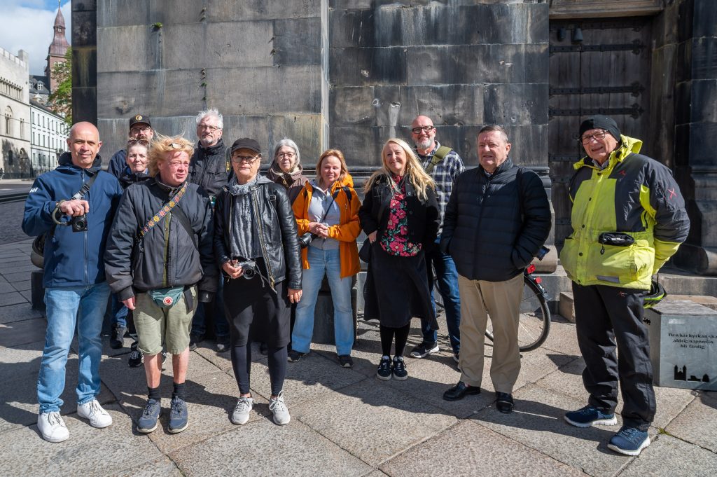 Vi var tretton stycken som slöt upp utanför kyrkan, i den isande kalla blåsten. Wolfgang håller i kameran. Tomas, Ulf, Ingemar och Sven saknas på bilden, då de slöt upp efter samlingen.