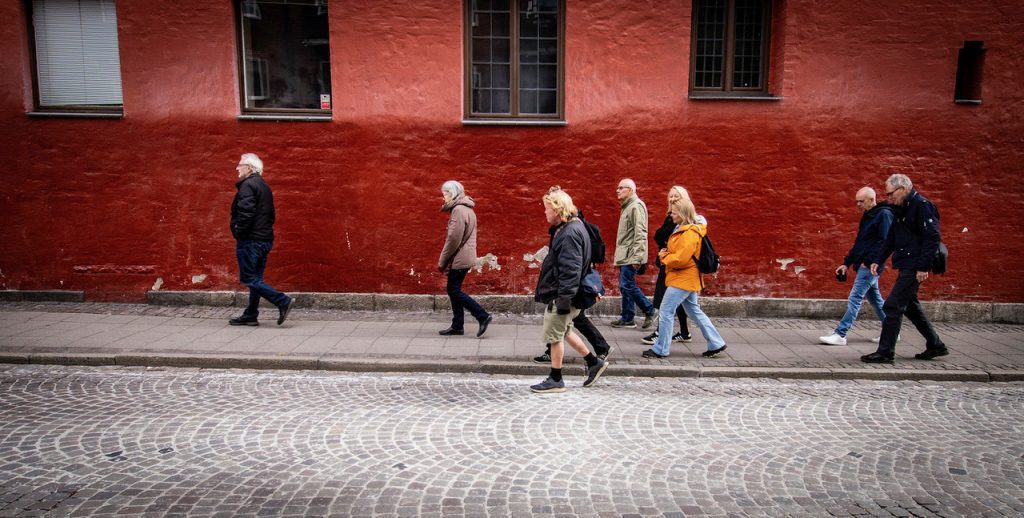 Wolfgang berättade att hade sett bilder på UB1 och önskade se den imponerande byggnaden i verkligheten. Han meddelade att han inte orienterade sig så bra i Lund. Så vi andra fortsatte uppför Sandgatan mot UB1 där Wolfgang, med flera vek av för att spana på byggnadsverket.