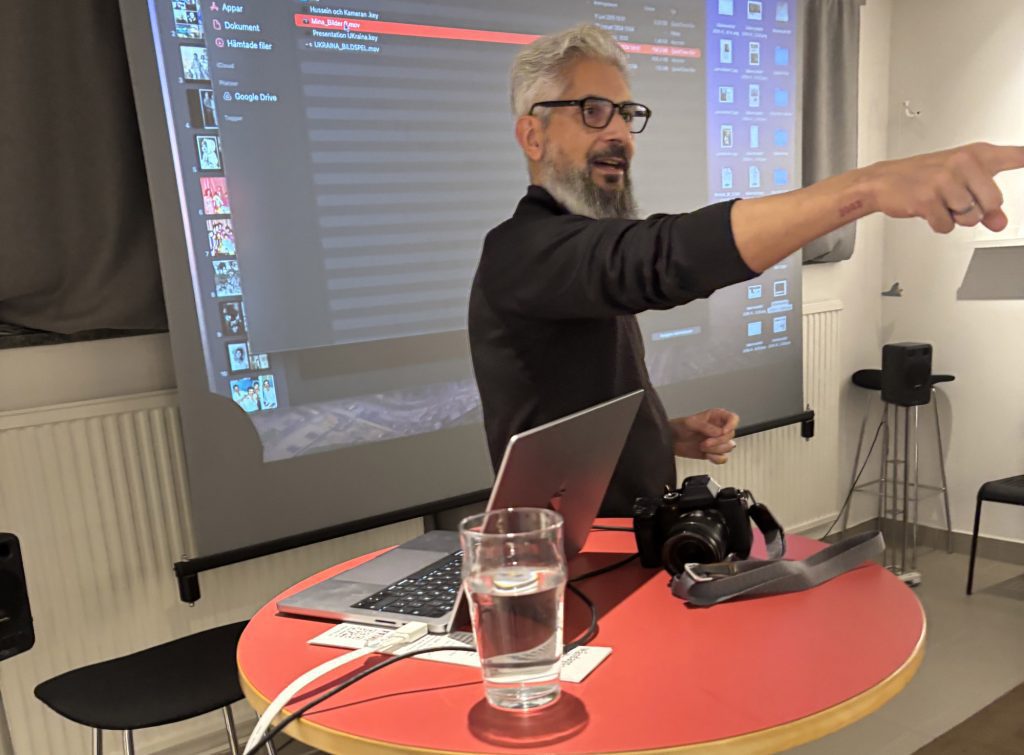 Efter fikat var det då dags för Hussein El-Alawi. Kopplingen till Strindbergs ”yrväder en aprilafton” kom till mig i bilen hem, när jag var helt blown-away efter att i en och en halvtimme ha lyssnat på Husseins snabba prat och en bildvisning med hisnande hastighet.