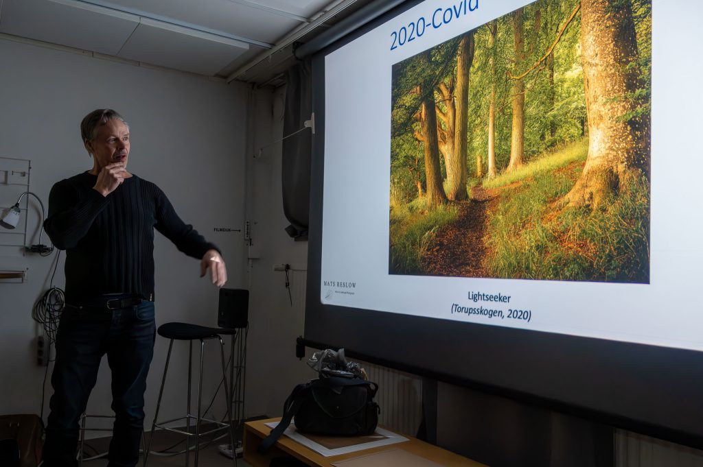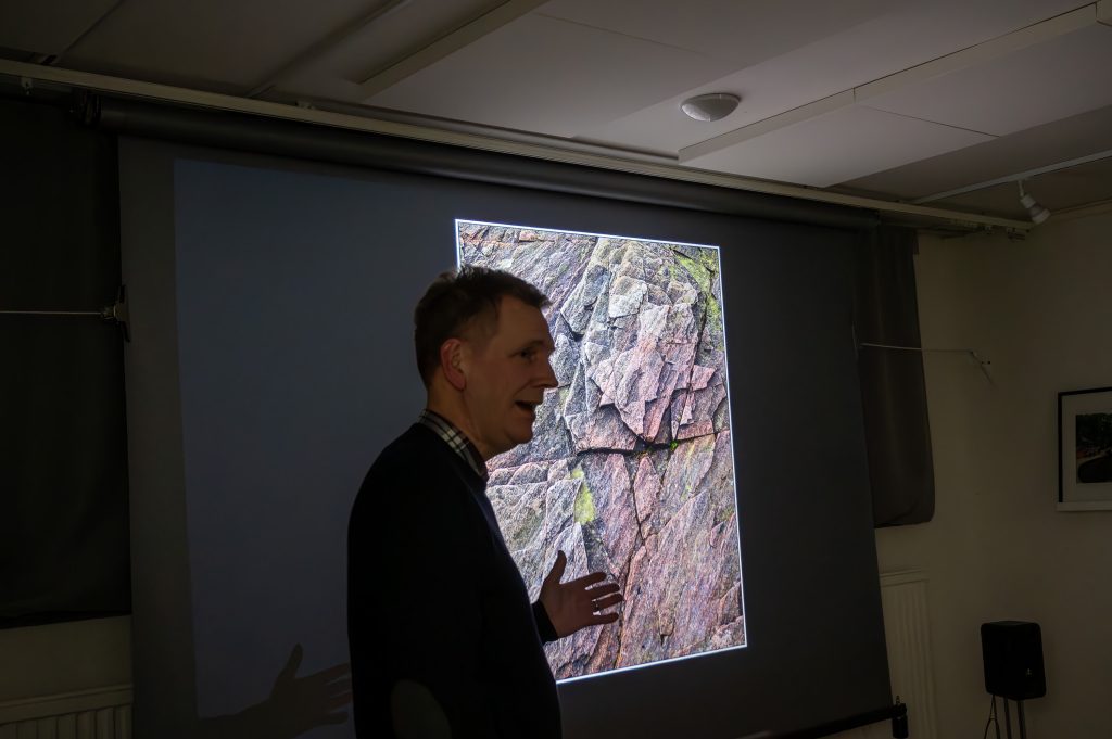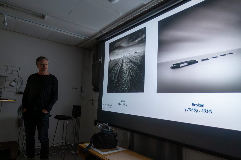 Själva processen att få bilderna från kameran till utskrift var också något Mats pratade om och han visade några exempel på hur en bild såg ut när den kom direkt från kameran och sedan via ett antal justeringar i Lightroom kunde se ut som han ville att den skulle se ut. Han nämnde att han hellre ville få bilden att ha ett uttryck, en upplevelse, en känsla, snarare än att dokumentera exakt ”hur det såg ut den dagen”, så justeringarna görs utifrån denna målsättning.