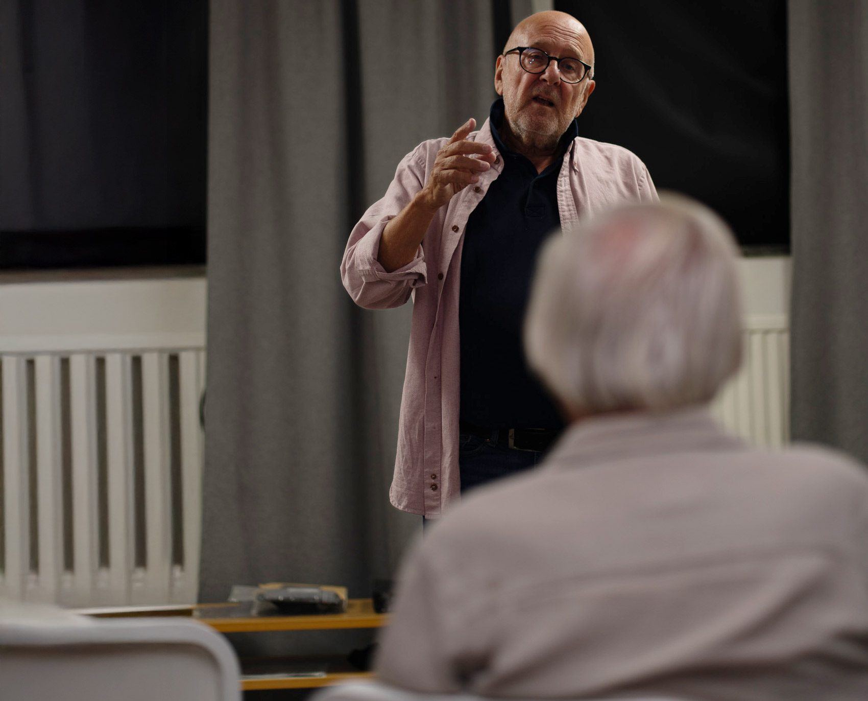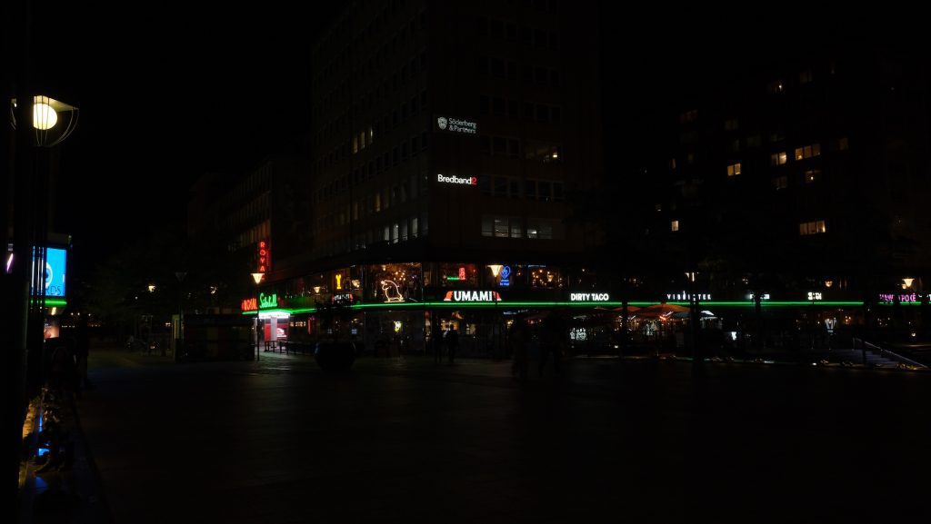 Tar man en bild i en mörk lokal, med endast befintligt ljus, så blir det inte ett jämnt ljus över hela bilden! Personen framför blir bara en siluett!